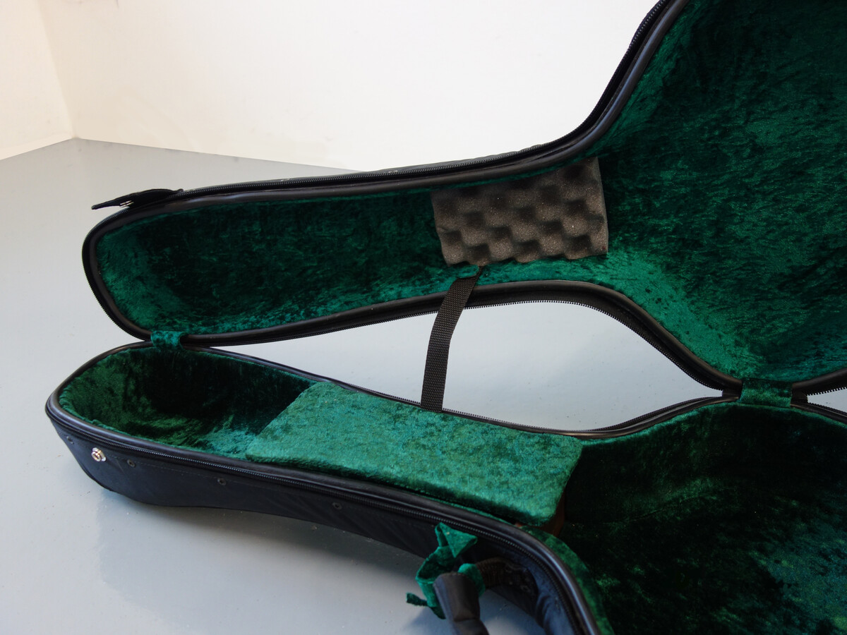 - Výbava: dvojité dodatečné karbonové vyztužení pro zajištění vyšší pevnosti pro leteckou přepravu, molitanové kostky pro lepší stabilizaci nástrojem, vnitřní úložný prostor v místě krku nástroje, zámek s možností uzamčení, možnost úchytu popruhů pro nošení na zádech